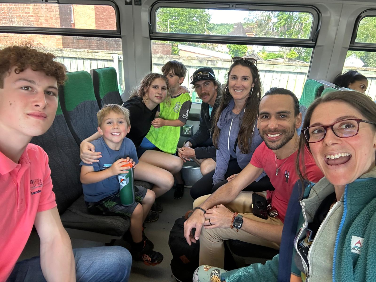 Jugamos Pickleball (varios por primera vez) en casa de Ross y Suzanne y nos tomamos la única foto de todos juntos.